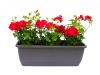 Jardinera INIS negra de 50cm con 3 Geraneos Hiedras transplantados.